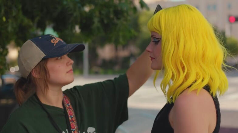This summer, I worked on the University of Oklahoma's first feature length film. I was department co-head of hair and makeup, and also did some graphic design, painting, and behind the scenes photography.Even though I don't consider hair and makeup to be a passion of mine, I was able to use my organizational skills to keep track of continuity in both hair and makeup as well as costumes. It was a big challenge: there were over 30 costumes to keep track of, the makeup varies a lot between scenes, and we filmed things very out of order. We worked 12 hours a day for 32 days, on both units, using our weekends to plan and prepare for the next week.