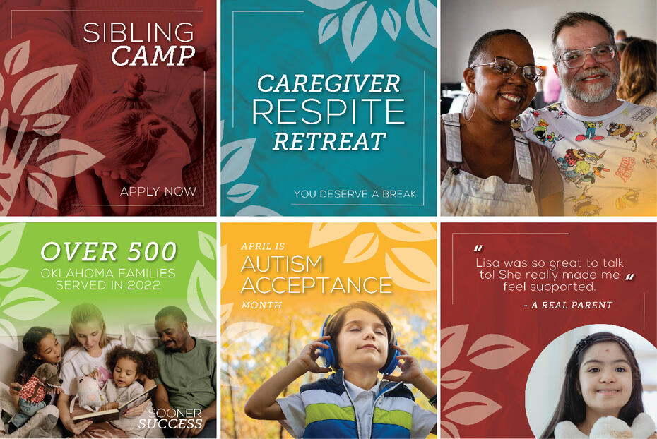Sooner Success' current social media presence now is very overcrowded with information and inconsistent, given that they work with other brands, their look is all over the place. But with such a people-facing mission, their brand needs to be a little more legible and easy understand for the families who need that information.I used their existing branding and color palette to make them several samples of templates for social media posts that they could use. Whether it's more photo focused or text focused, I made sure to give them variety. I also recommended that they keep their longer copy in the captions of posts instead of trying to fit every piece of information on one overcrowded graphic.